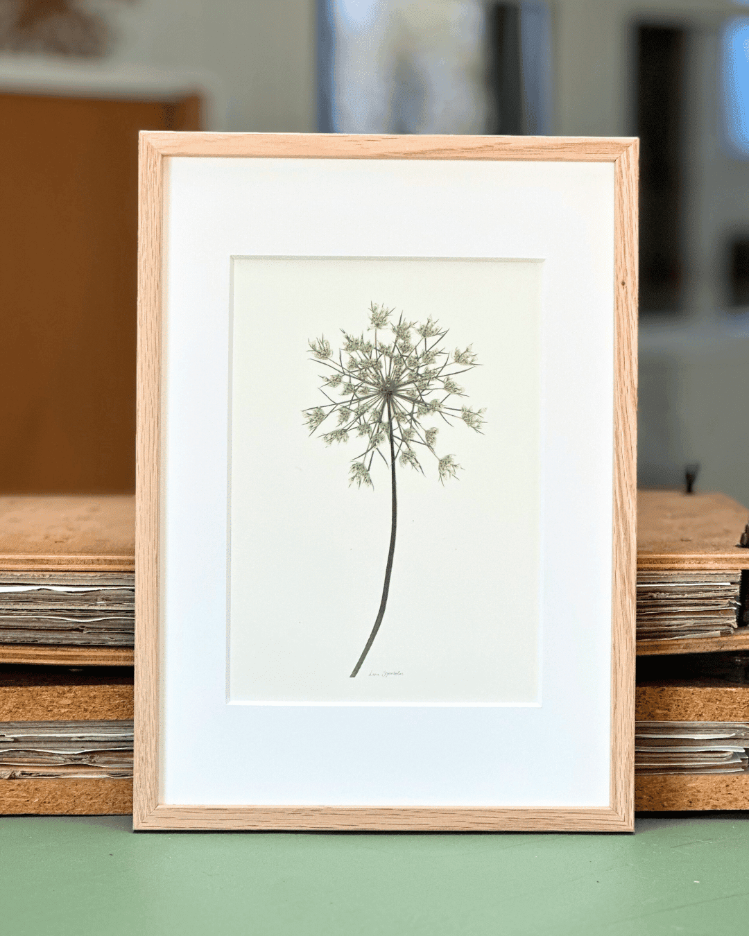 Passepartout og A4 egetræsramme med glas.