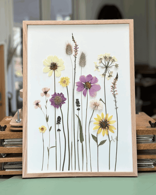 Blomsterne i dette værk er indsamlet og presset i min egen have i sommeren 2024