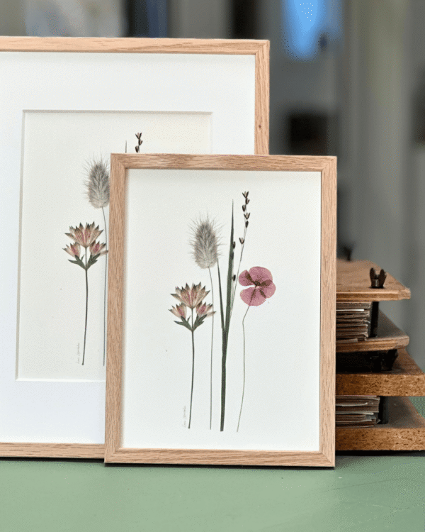 Print af pressede blomster.