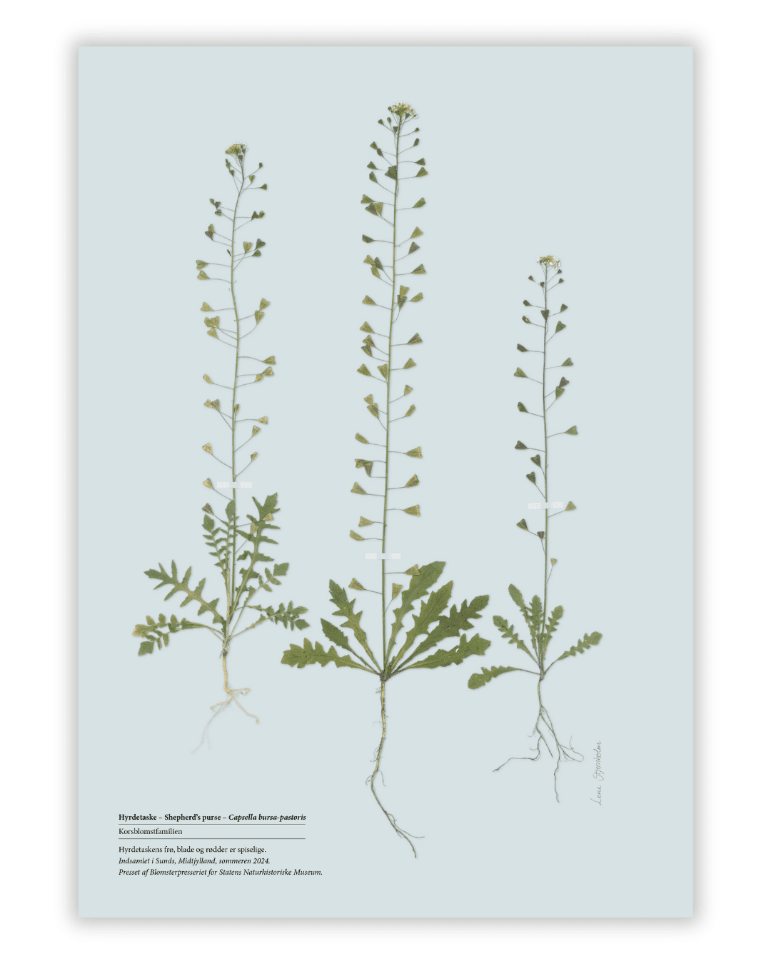 Motiverne er oprindeligt lavet med rigtige pressede blomster – indsamlet, presset og opsat af Blomsterpresseriet for Statens Naturhistoriske Museum, København.