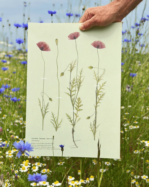 Motiverne er oprindeligt lavet med rigtige pressede blomster – indsamlet, presset og opsat af Blomsterpresseriet for Statens Naturhistoriske Museum, København.
