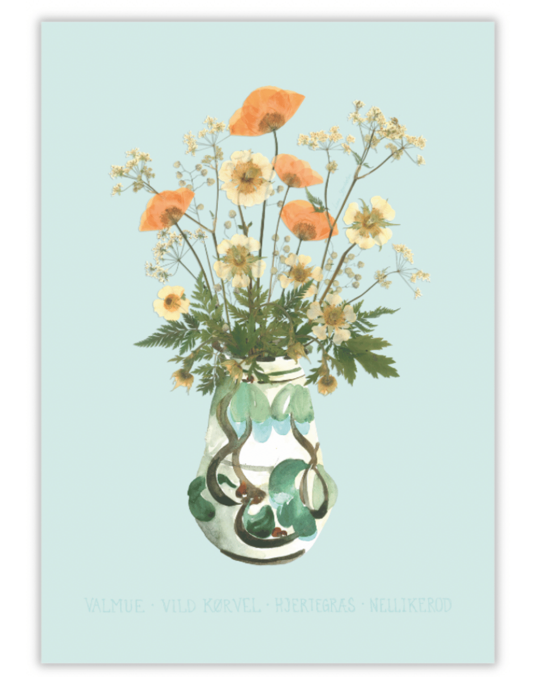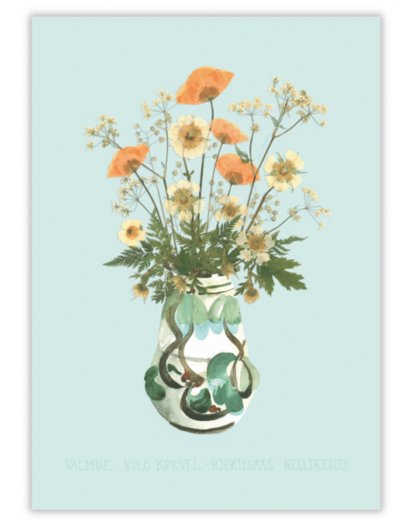 Buketten er sammensat af; Valmuer, Vild kørvel, hjertegræs og nellikerod