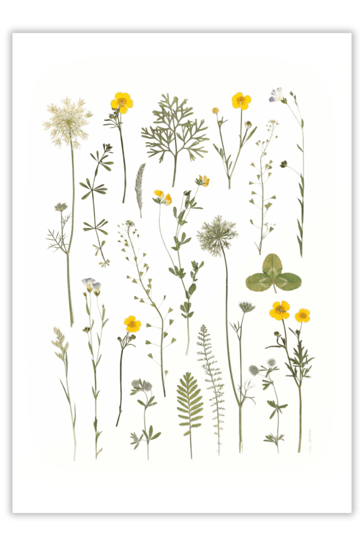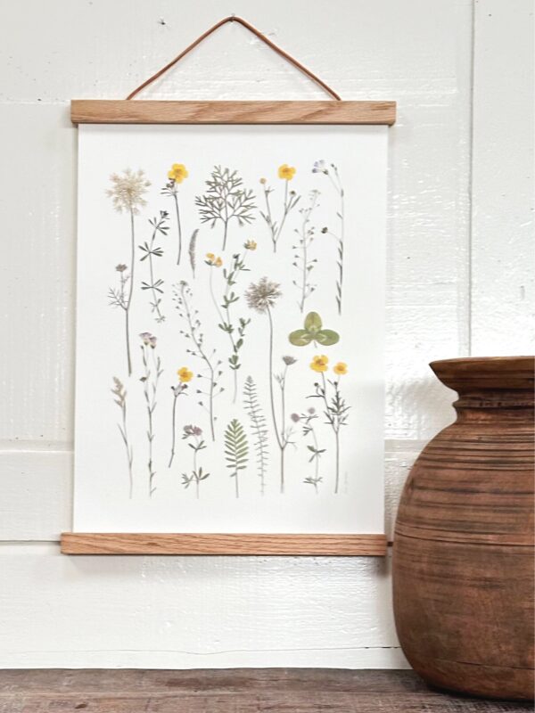 Motiverne i alle Blomsterpresseriets plakater er oprindeligt lavet med rigtige pressede blomster – indsamlet og presset i den skønne danske natur og smukke haver.