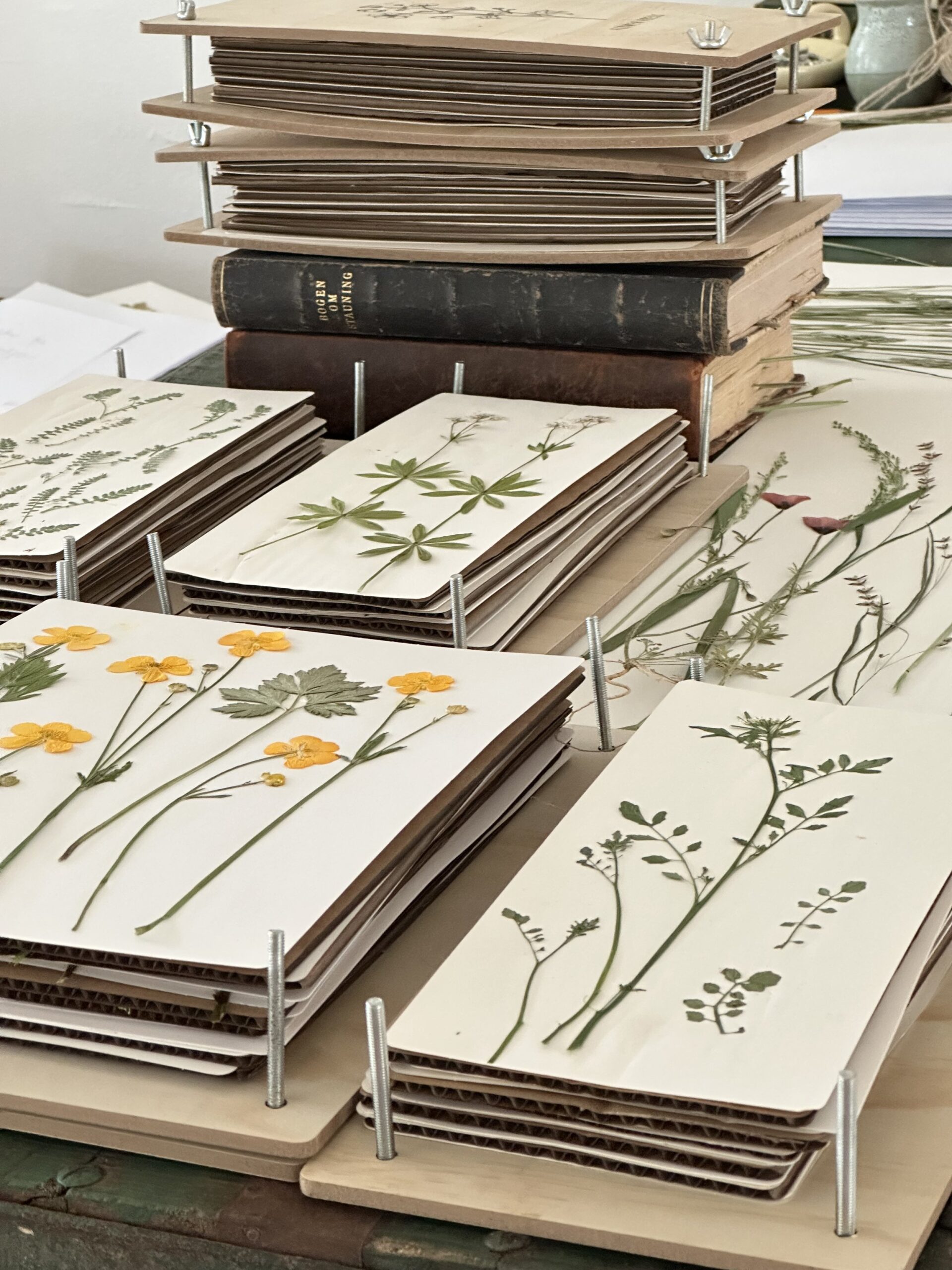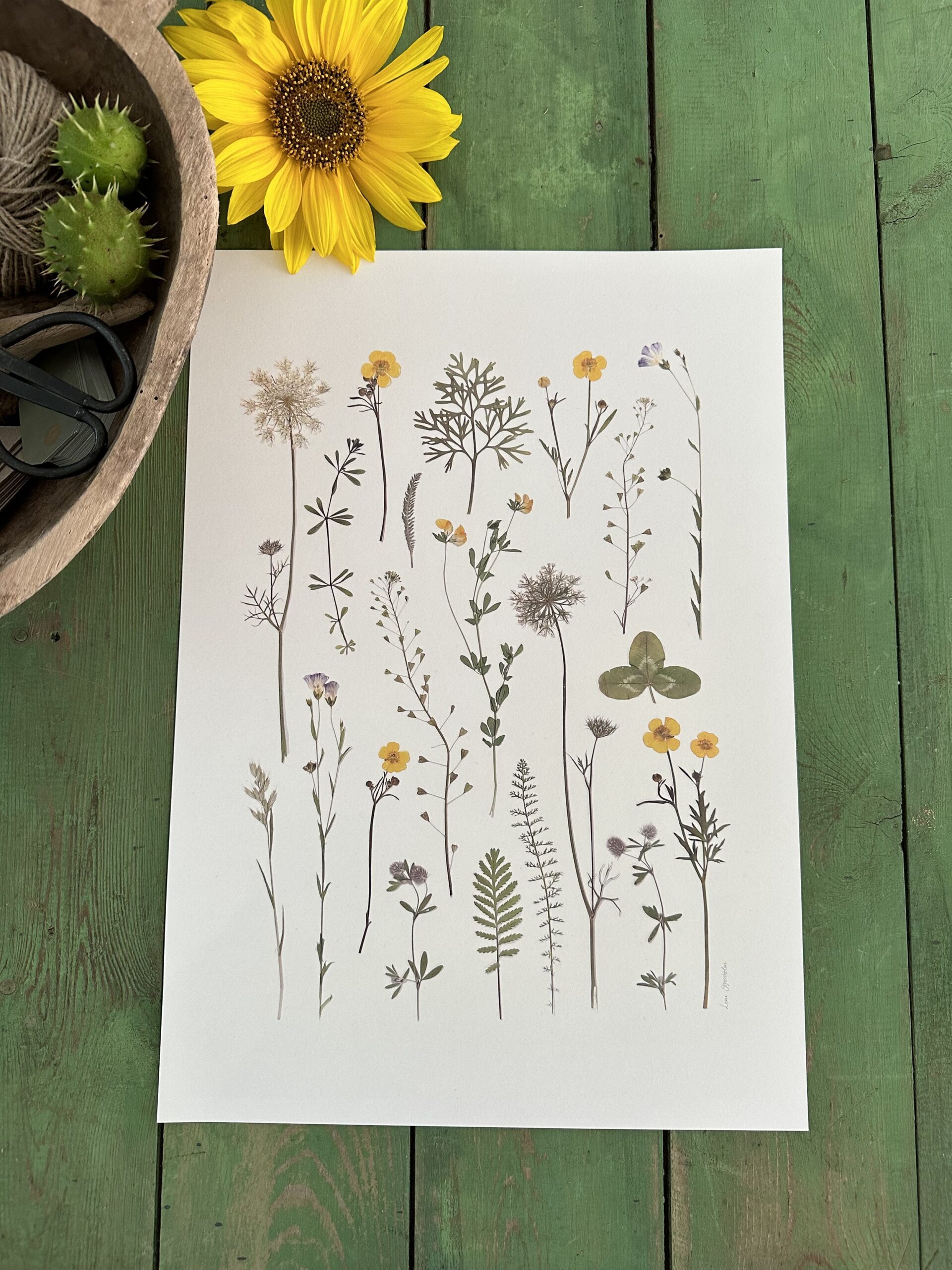 Blomsterne i dette værk er plukket og presset på daglige gåture i mit eget nabolag i Midtjylland.