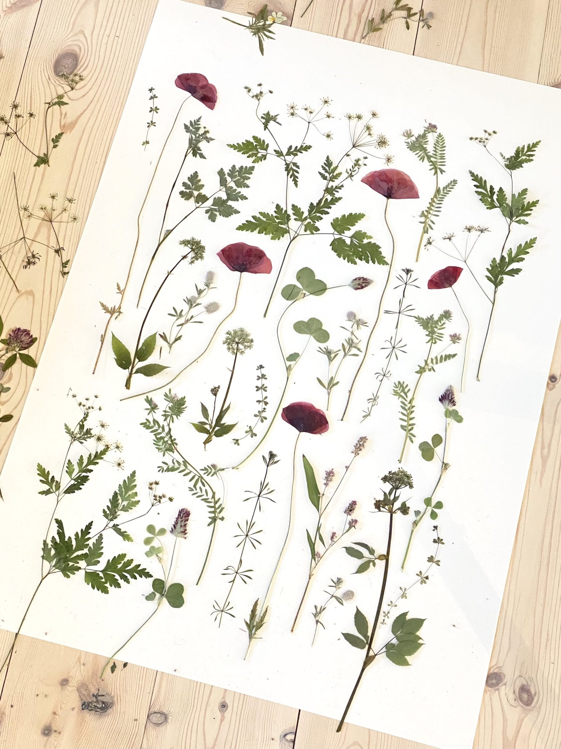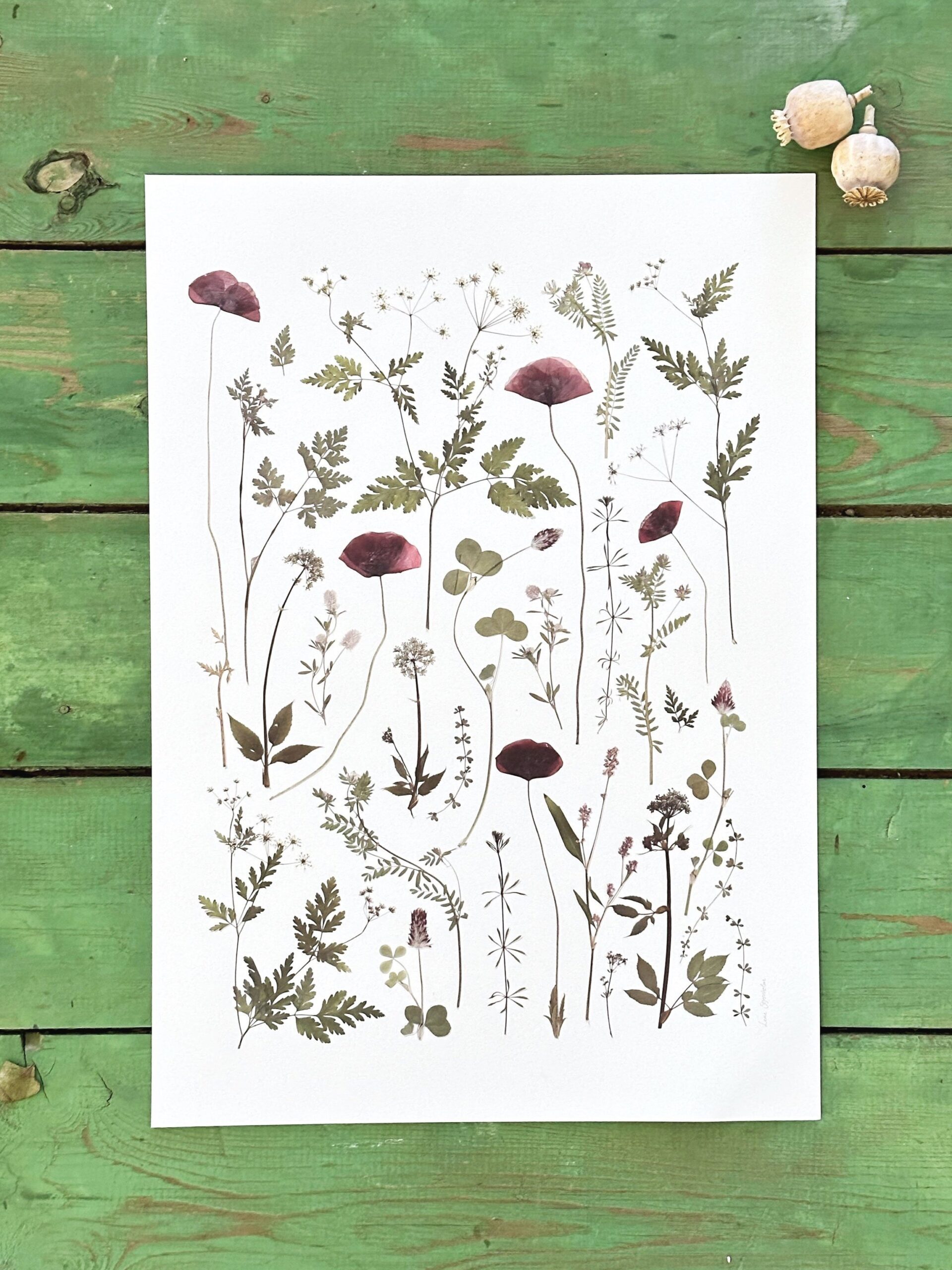 Blomsterne i dette værk er plukket og presset på daglige gåture i mit eget nabolag i Midtjylland.