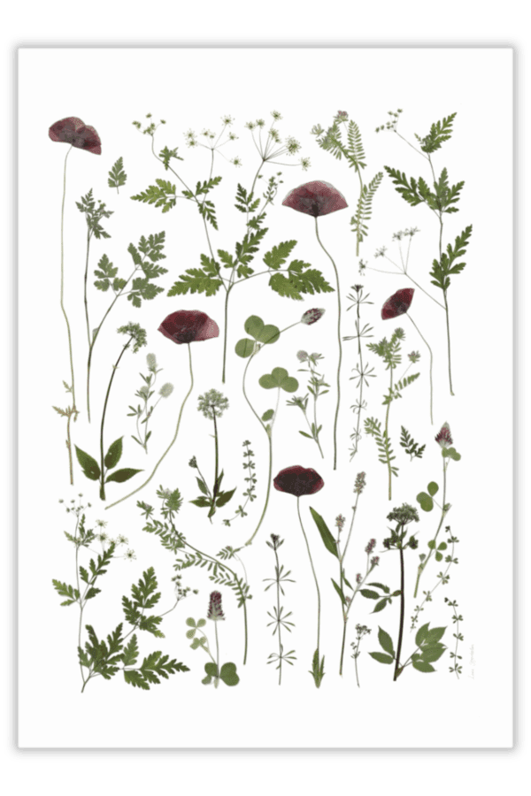 Plakatens motiv er oprindeligt lavet med rigtige pressede blomster – indsamlet, presset fra grøftekanten.