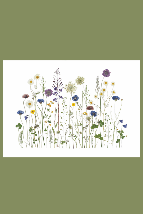 Blomsterne i dette værk er indsamlet og presset i grøftekanter og blomsterenge i sommeren 2025.