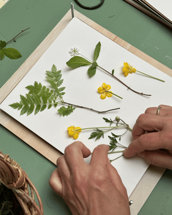 I løbet af workshoppen går vi også udenfor og fylder hver vores blomsterpresser med blomster og grønt. Jeg vil dele ud af mine allerbedste tips og tricks til vellykket blomsterpresning – så du sommeren igennem kan lege videre med blomsterpresning.